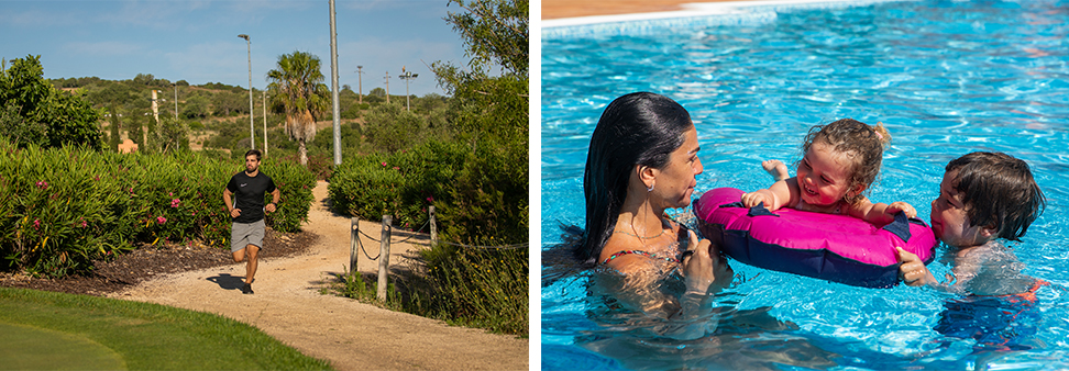No Amendoeira, encontrará várias piscinas, dois campos de golfe de 18 buracos e um campo de 9 buracos, o único campo de golfe iluminado do país. Há também uma Academia de Golfe com driving range e putting green, um campo de futebol feito segundo os padrões da FIFA, dois campos de futebol de 5, seis campos de ténis Savannah, dois campos de padel, um ginásio Technogym totalmente equipado, uma pista de jogging, e um parque infantil.