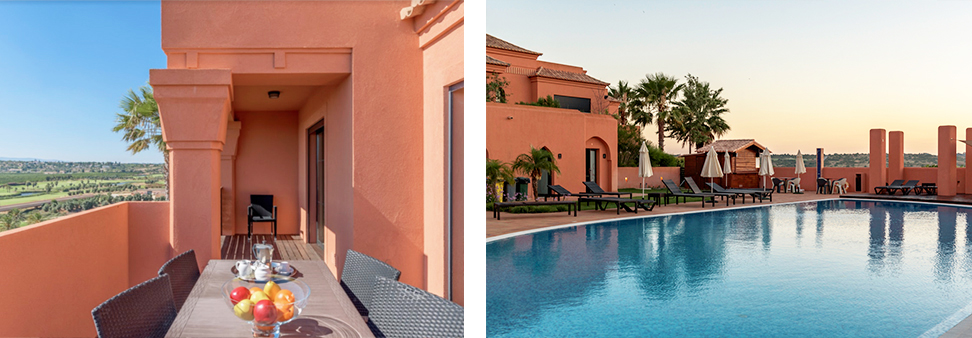 Na maioria das unidades, as portas da sala dão acesso a uma varanda equipada com mobiliário de exterior e as portas dos quartos dão acesso à piscina privativa.